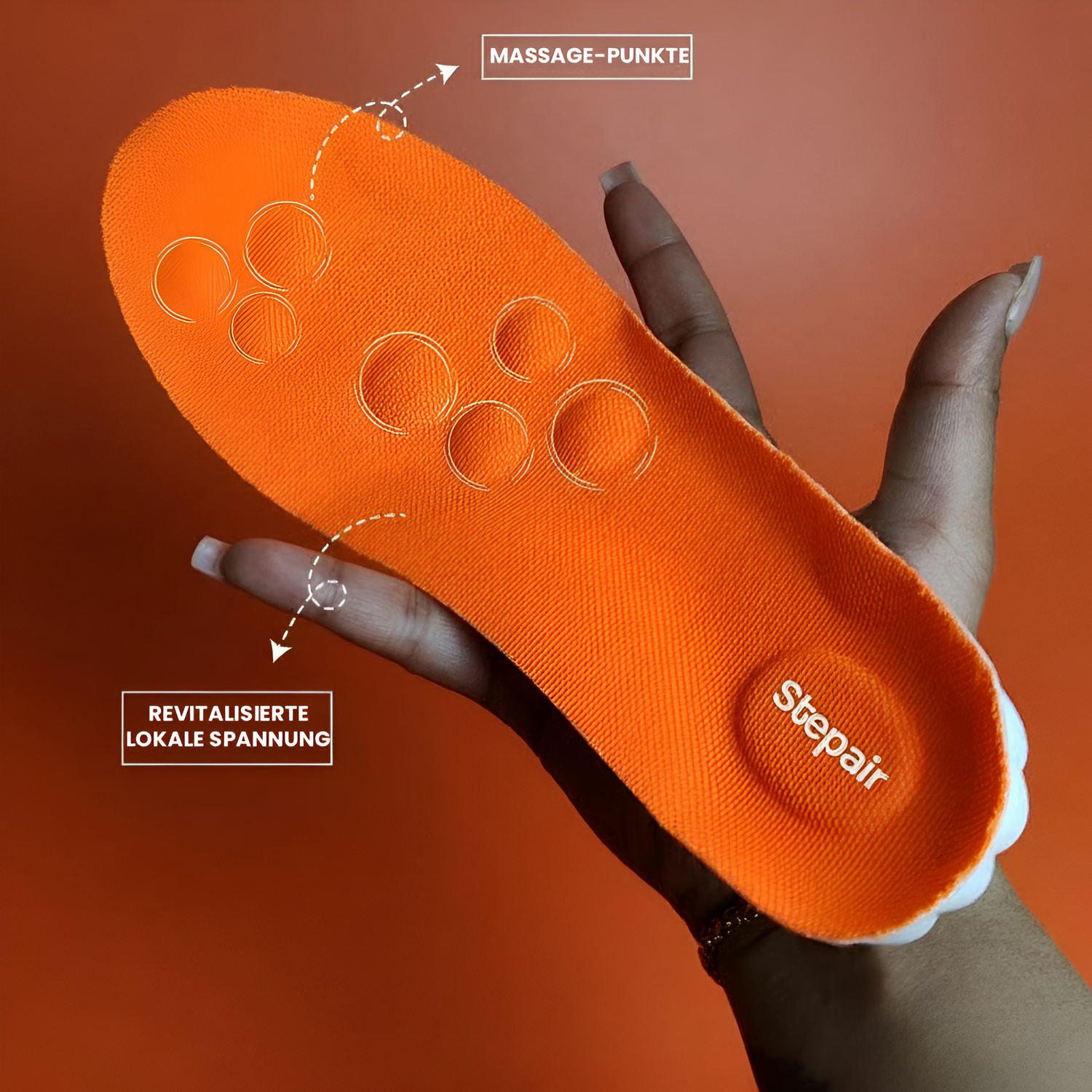 In die Konstruktion von Stepair sind spezielle Massagepunkte integriert, die dein entzündetes Gewebe bei jedem Schritt sanft stimulieren.