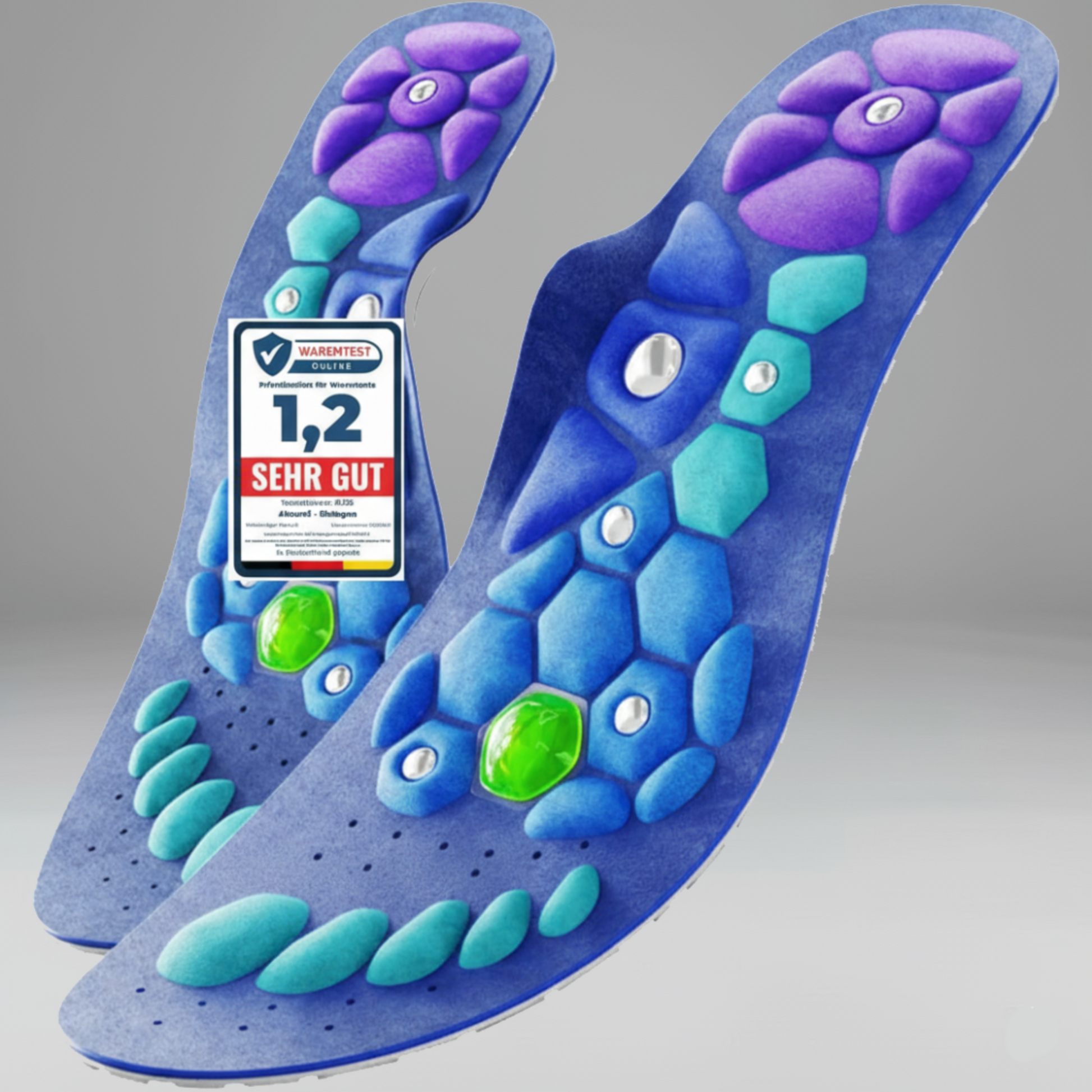 Auf dieser Grundlage sind die Akusoli Einlegesohlen mit Magneten ausgestattet, die an Druckpunkten platziert sind, die bestimmten Körperteilen entsprechen und den ganzen Tag über für Entlastung sorgen.